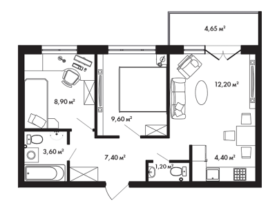 Апартаменты площадью от 38 м² до 102 м² с разнообразными планировками предлагают жилье как для небольших семей и молодых пар, так и для тех, кто ищет больше пространства и комфорта